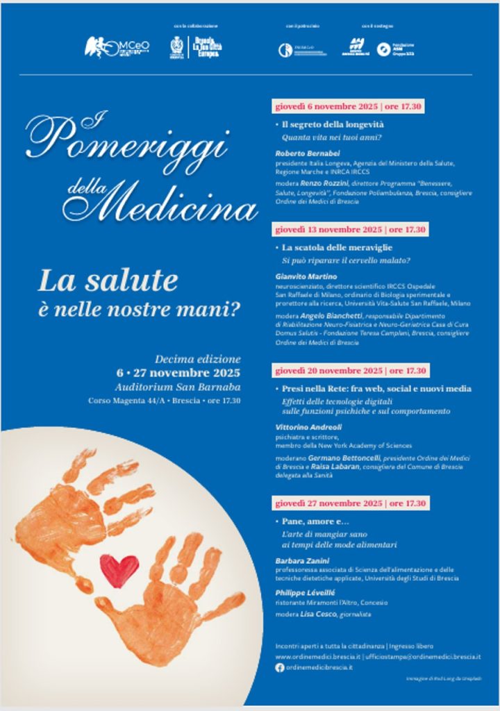 In occasione della decima edizione del ciclo di seminari “I pomeriggi della Medicina” proposto dall’Ordine dei Medici Chirurghi e degli Odontoiatri di Brescia e in collaborazione con il Comune di Brescia, presso l’Auditorium San Barnaba verrà proposto un incontro dedicato all’alimentazione e alle scelte che possiamo fare per promuovere la salute. L’evento è libero e aperto a tutta la cittadinanza.
